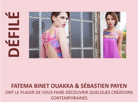 C’est alors qu’apparurent d’élégants mannequins qui présentèrent les nouvelles créations du styliste Sébastien Payen et de la plasticienne-désigner Fatema Binet-Ouakka. Le public put admirer les tableaux peints sur les robes, feux d’artifice de couleurs en mouvement. Cette présentation suscita l’enthousiasme du public.